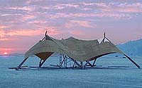 Although the structure weighed 80 tons it was shown to support 13,000 tons before collapsing (a 1/165 weight to strength ratio!). "Our goal is to create minimal structures with maximum structural integrity in all loading configurations - hurricane, earthquake, snow, even tornado" - Chuck Henderson Inventor. |